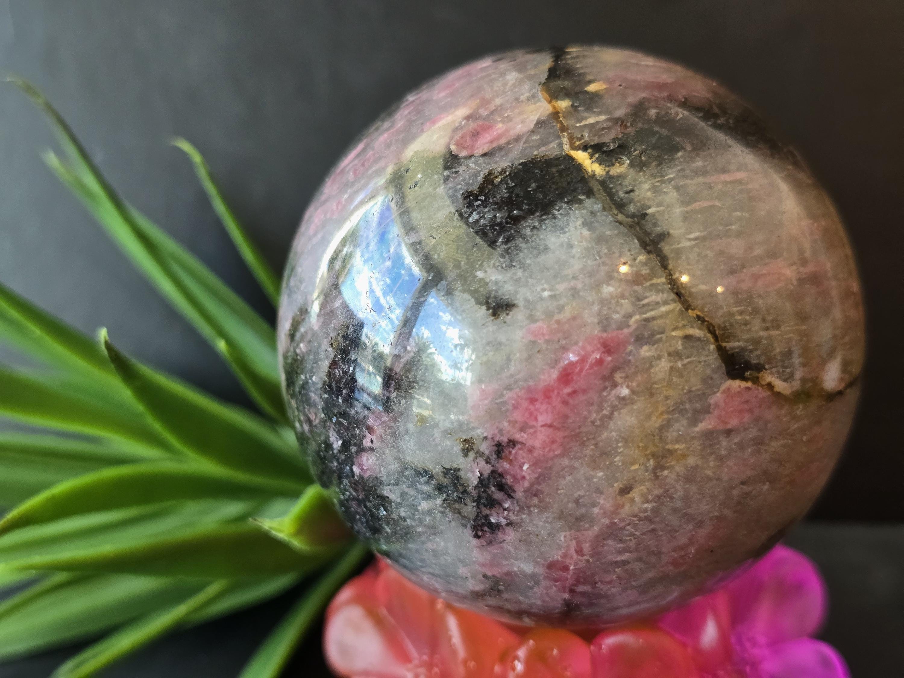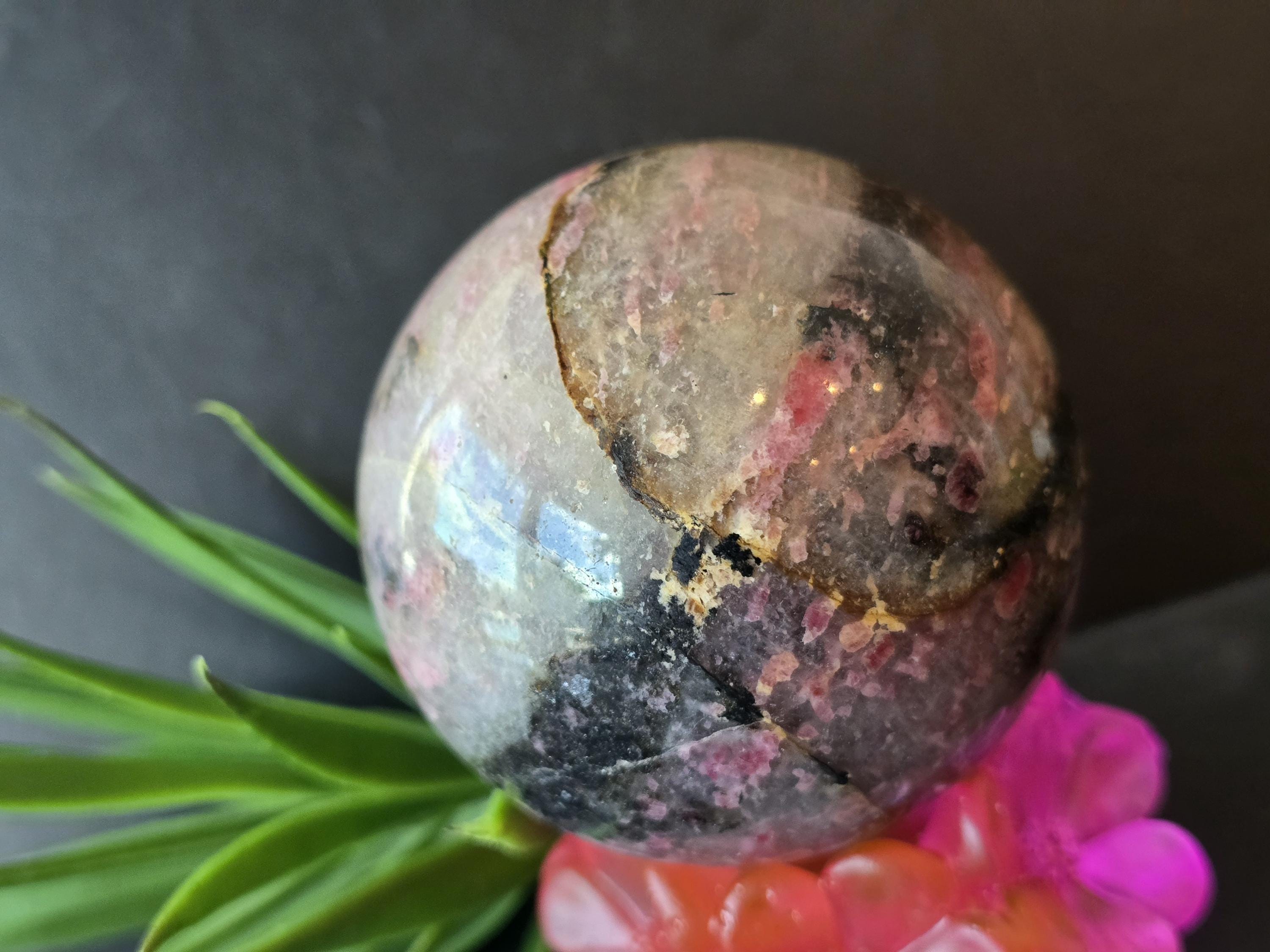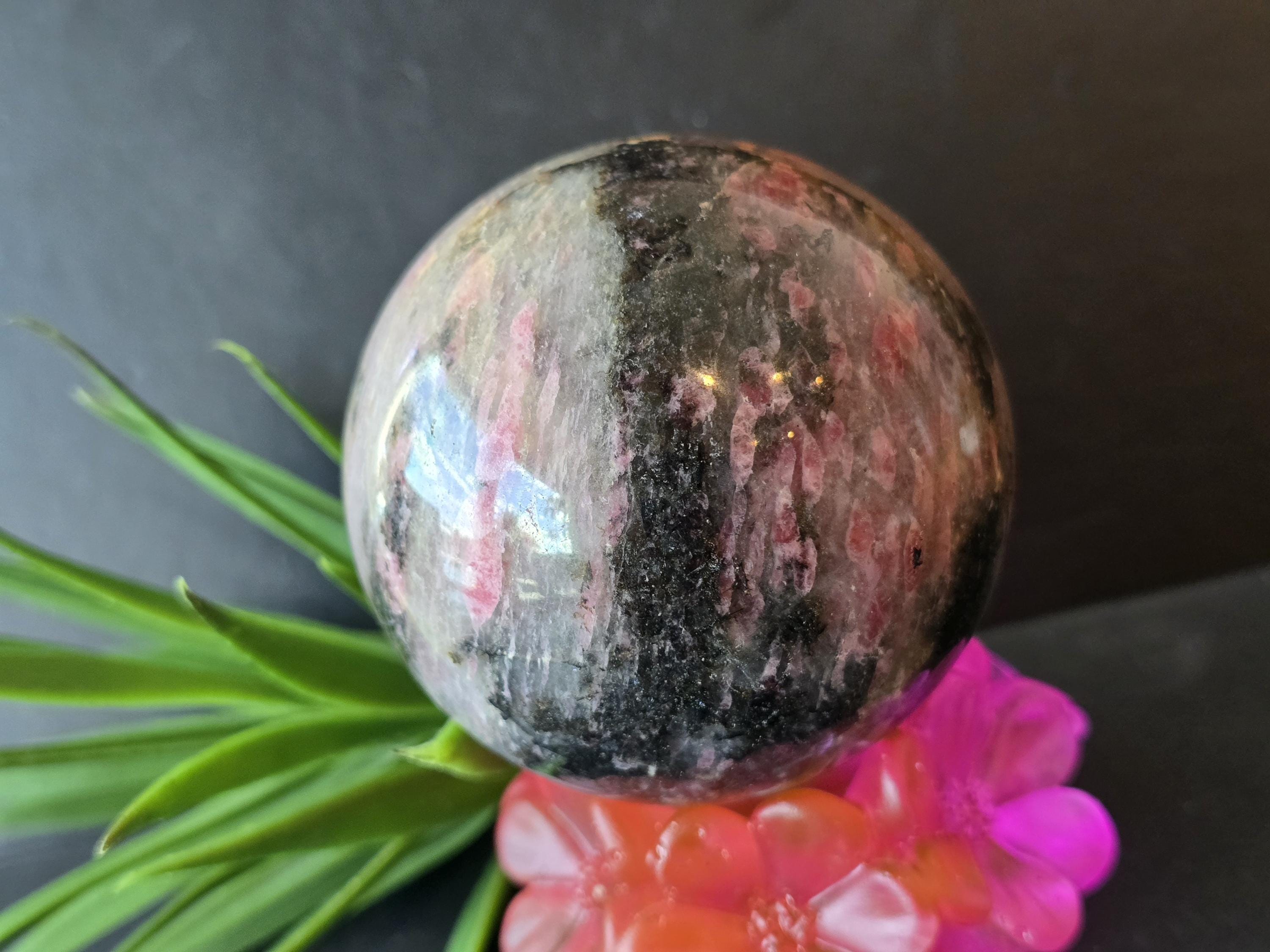 Refills: Natural A++Quality Polished Rhodonite Crystal Sphere with Beautiful Quartz