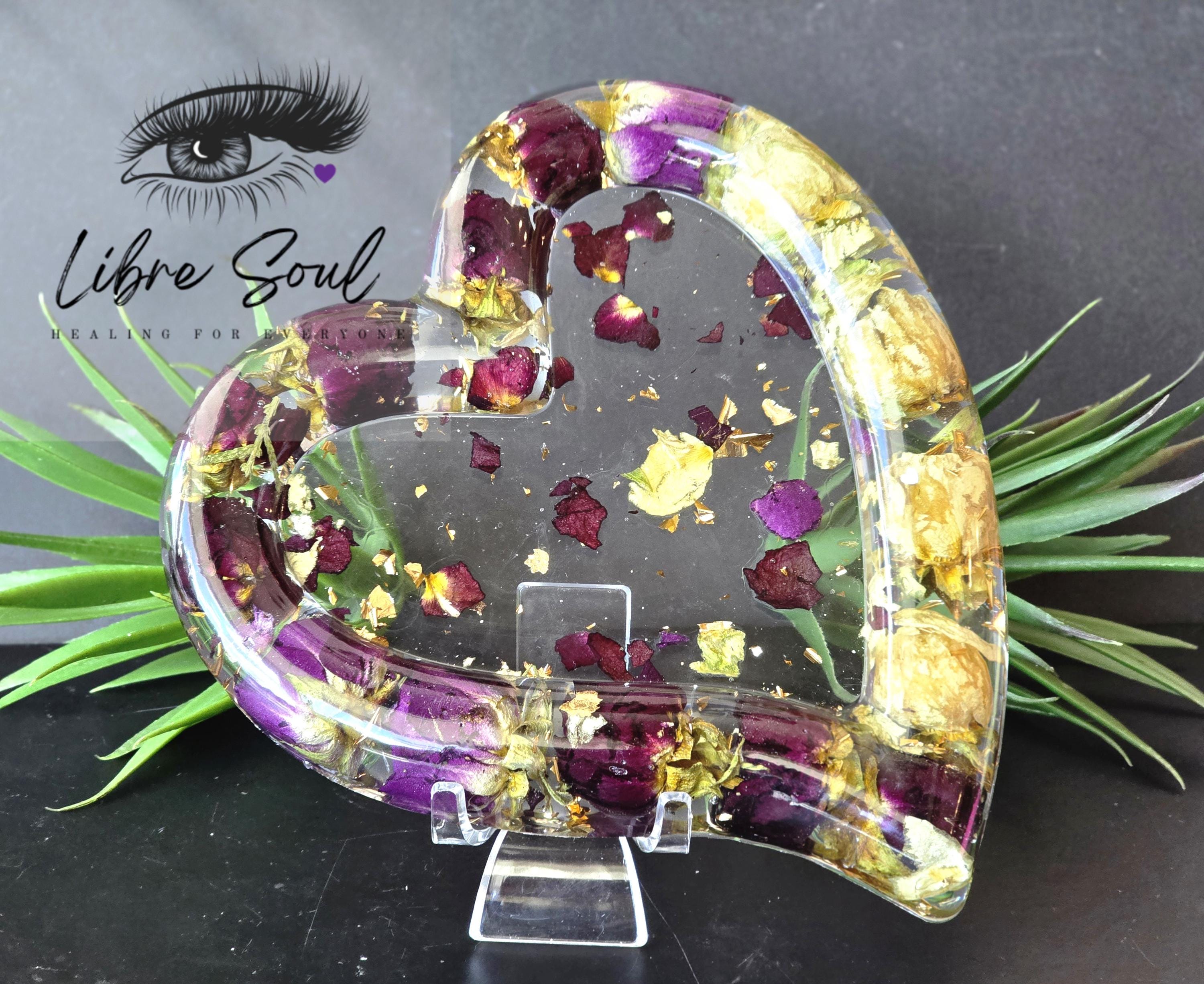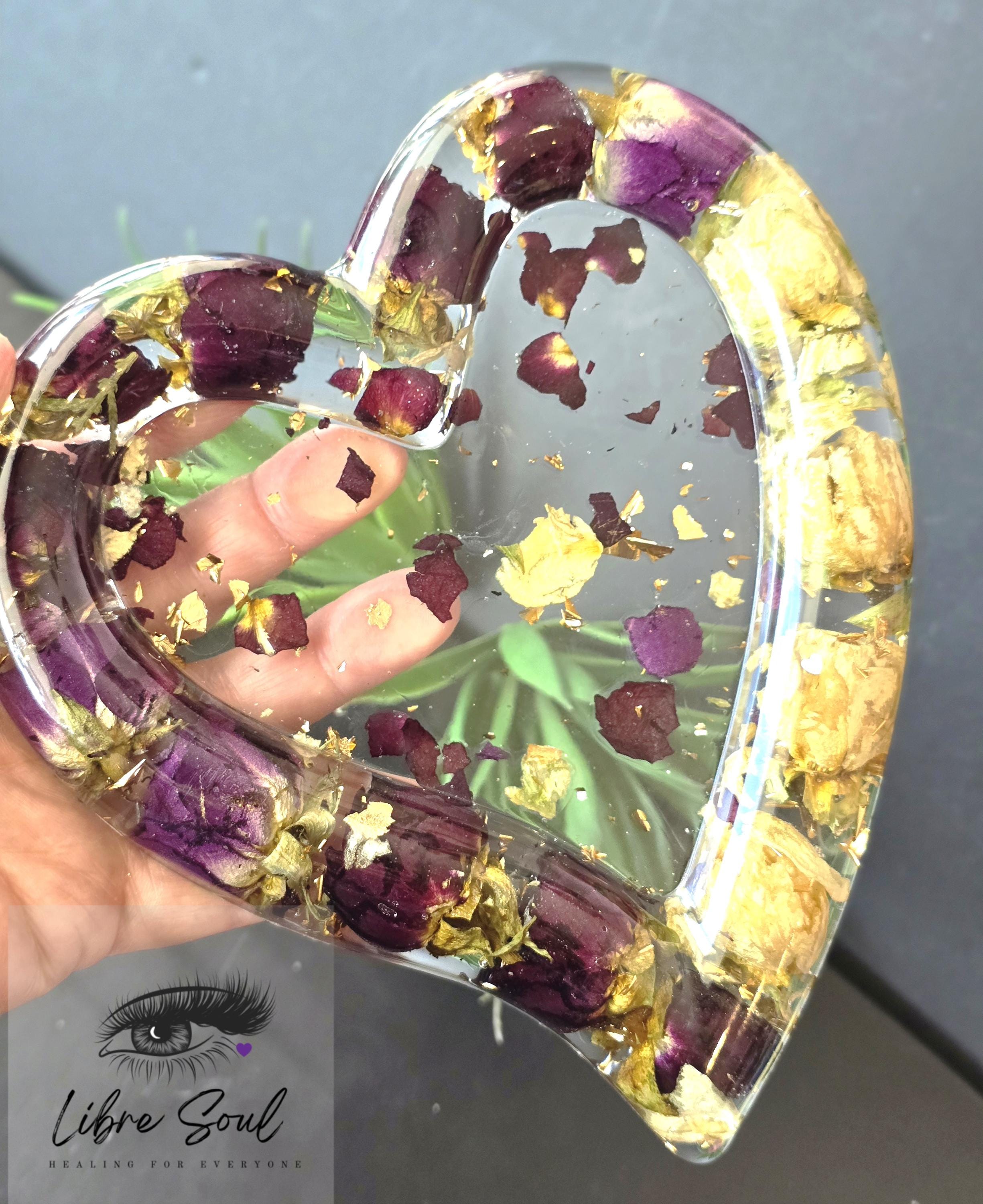 A Beautiful 6" Dried Tea Roses Handmade Resin Bowl made by Libre Soul Creations! Red and Off White Dried Tea Roses with some Gold flecks...pretty!!