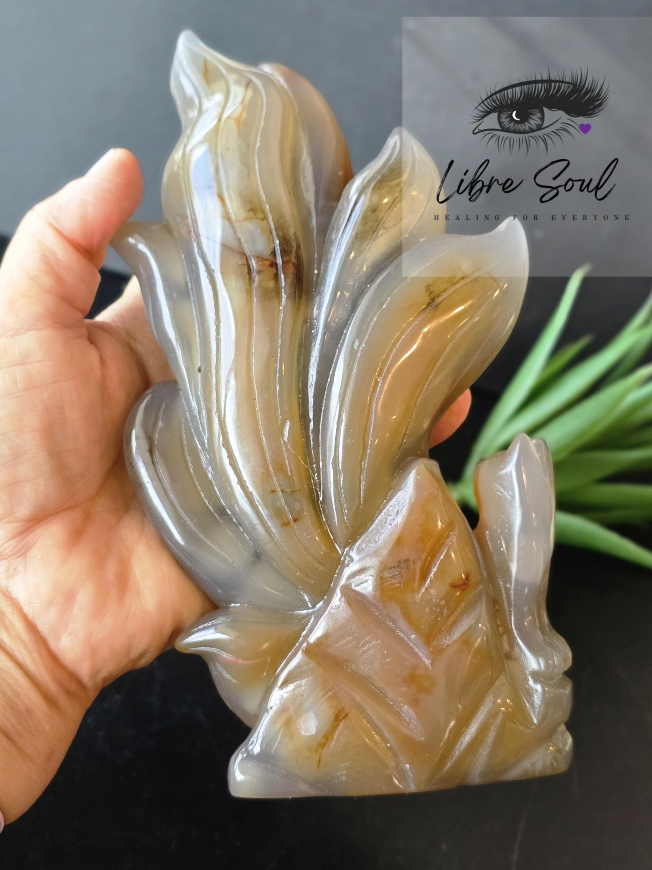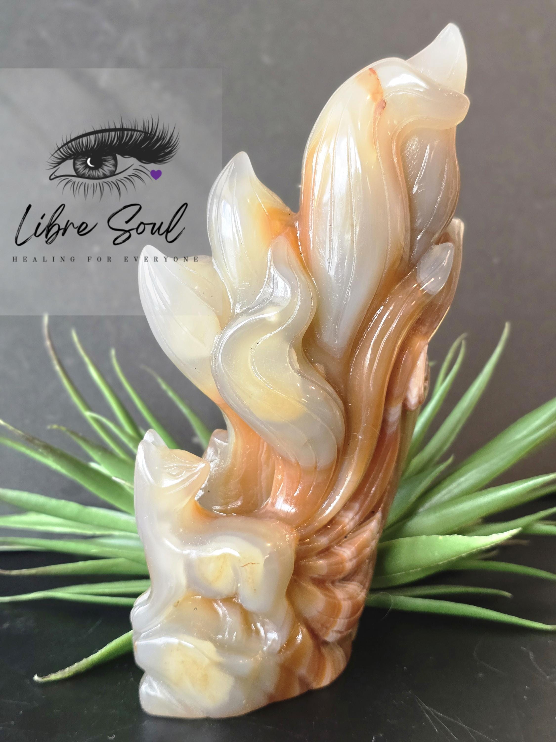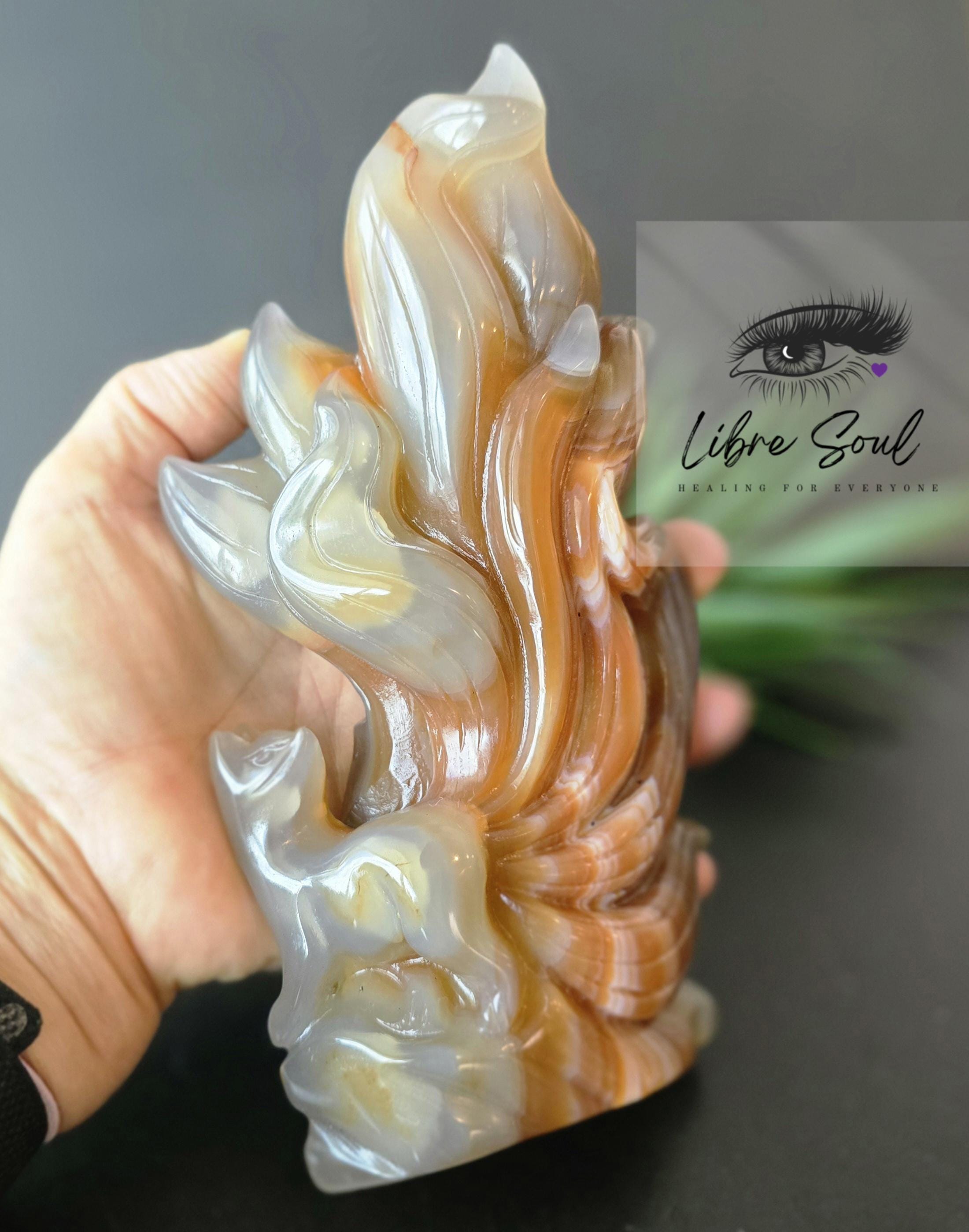 A Natural Carnelian & Agate Quartz sculpted Nine Tailed Fox Carving~ GORGEOUS!!!!