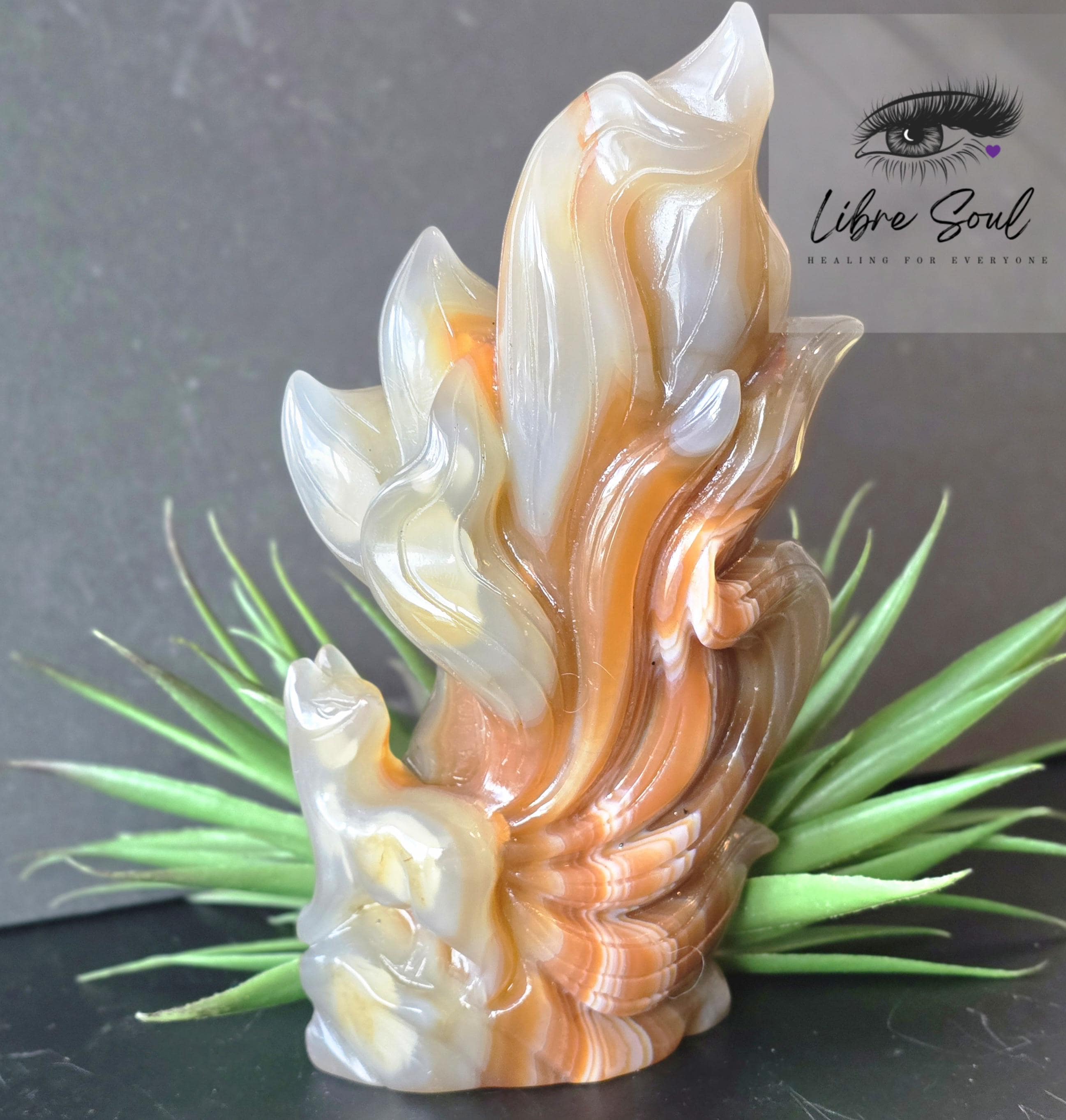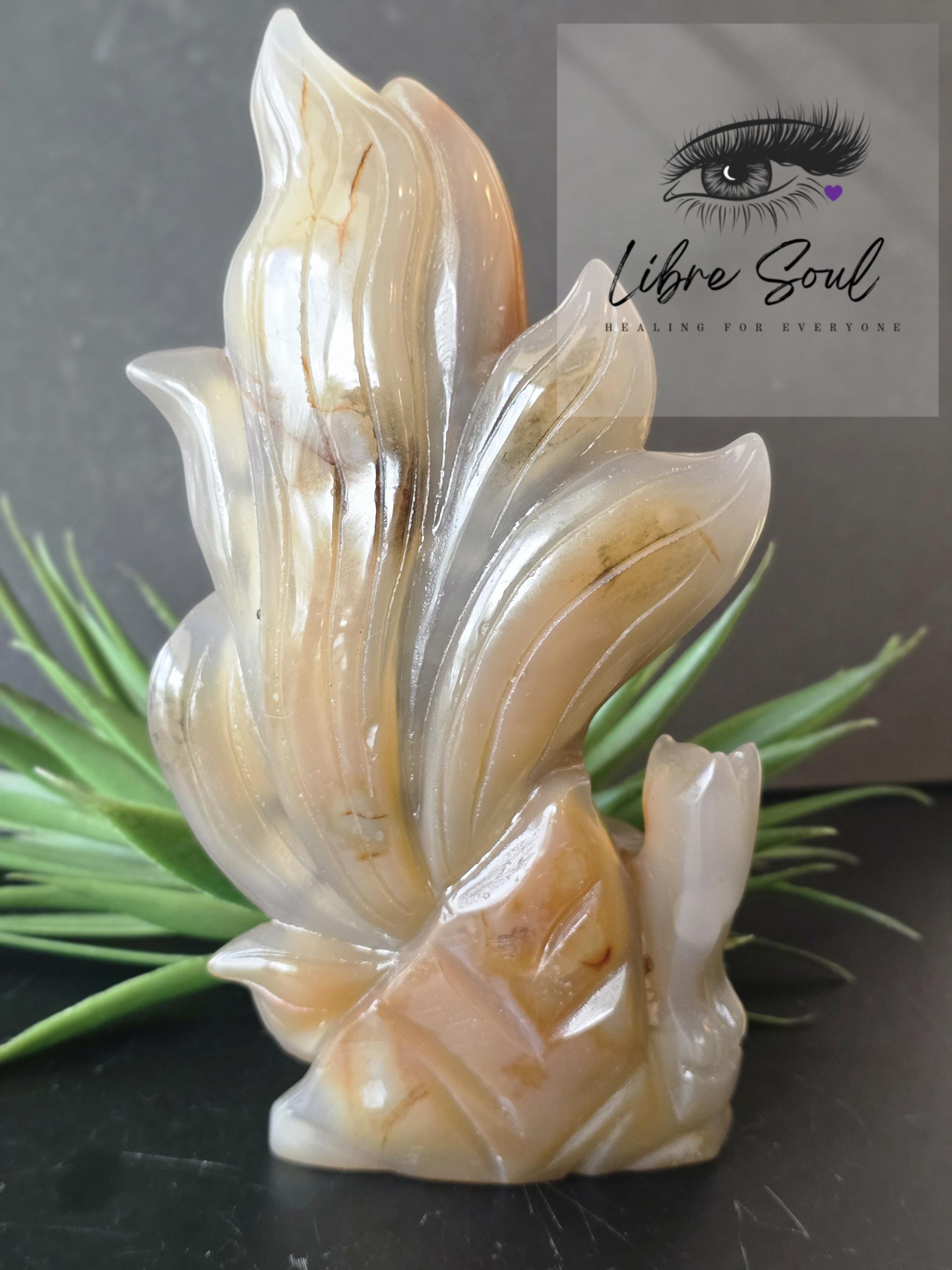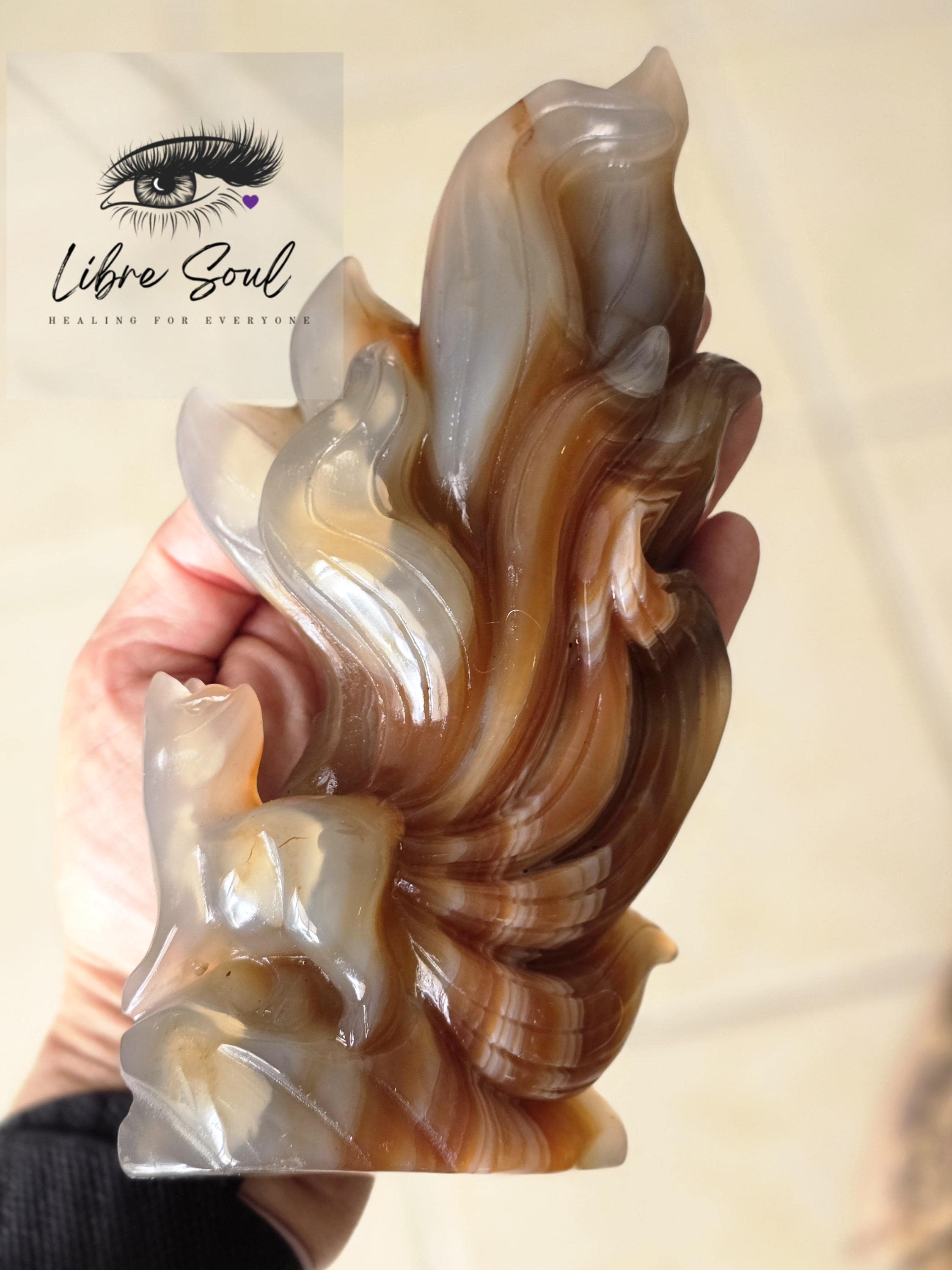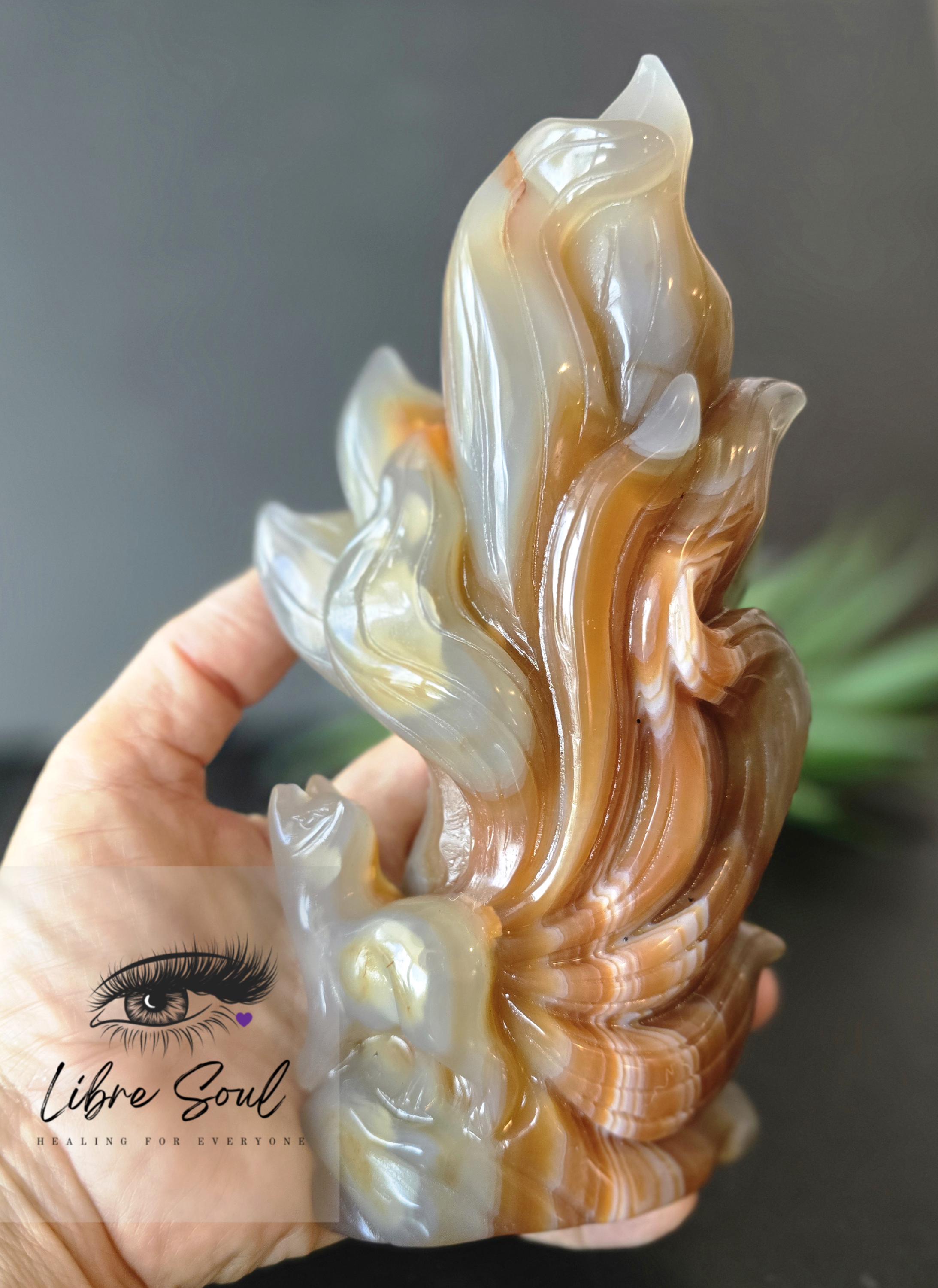 A Natural Carnelian & Agate Quartz sculpted Nine Tailed Fox Carving~ GORGEOUS!!!!