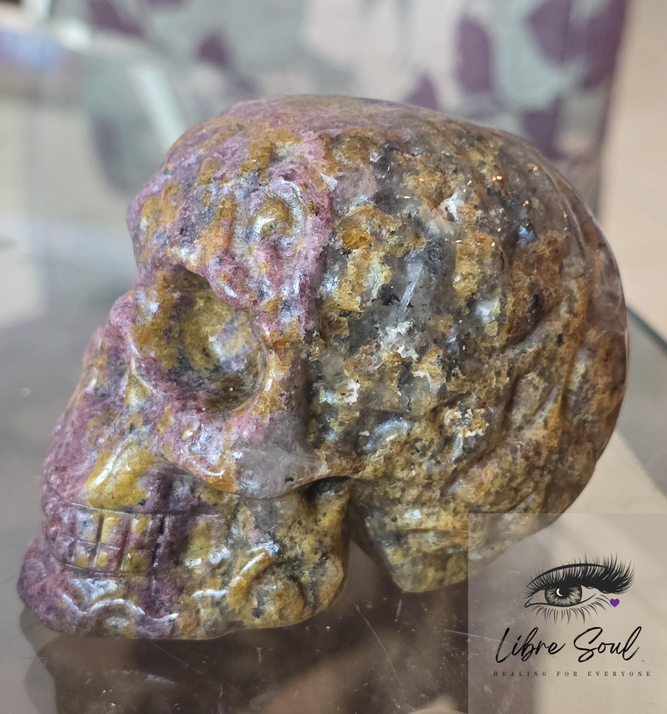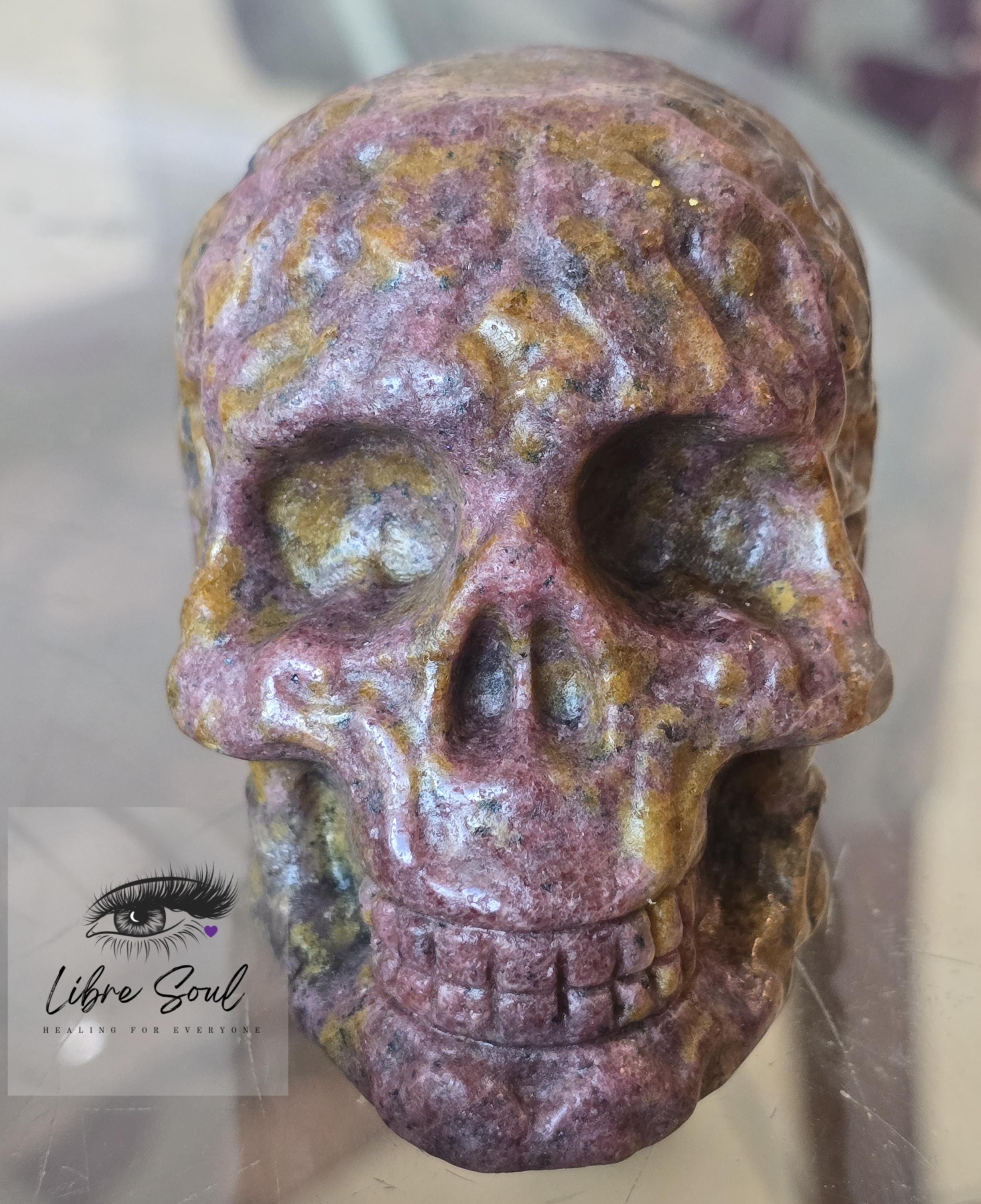 Natural Rhodonite Carved Crystal Skull