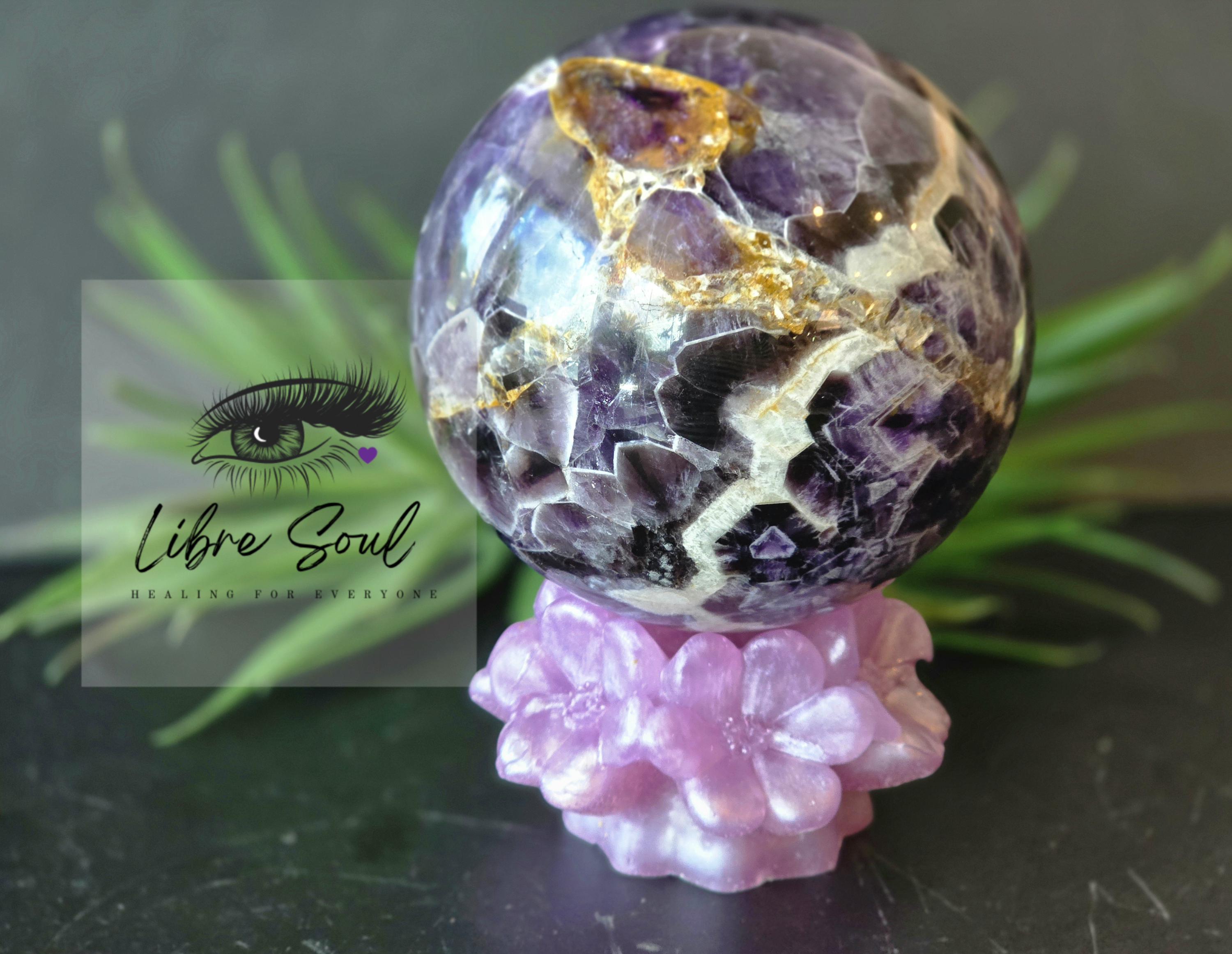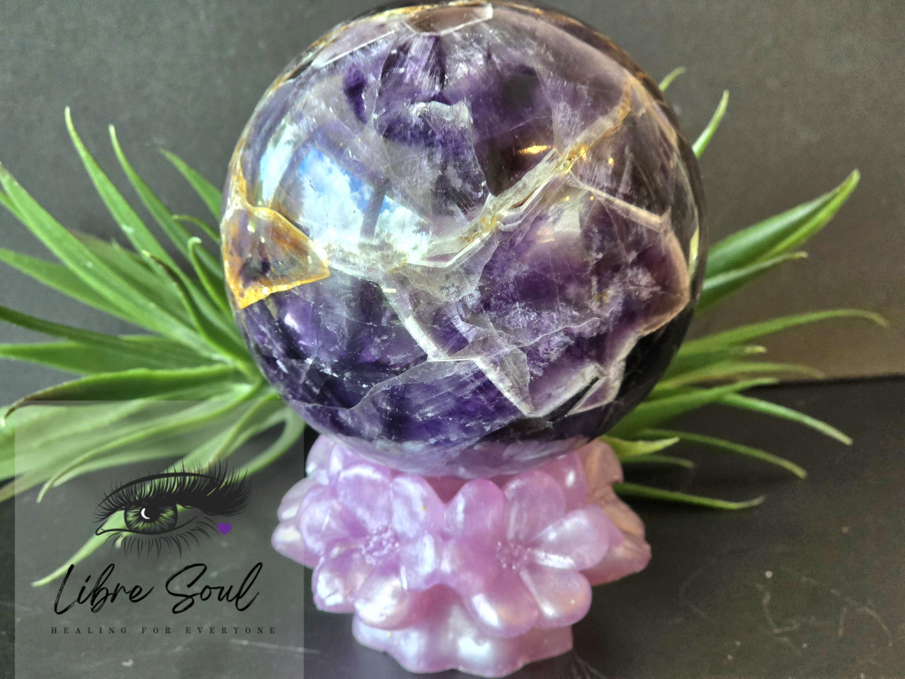 Gorgeous Unique Dreamy Chevron Amethyst Sphere with Stand...unique and stunning pattern and flower....stand included,,