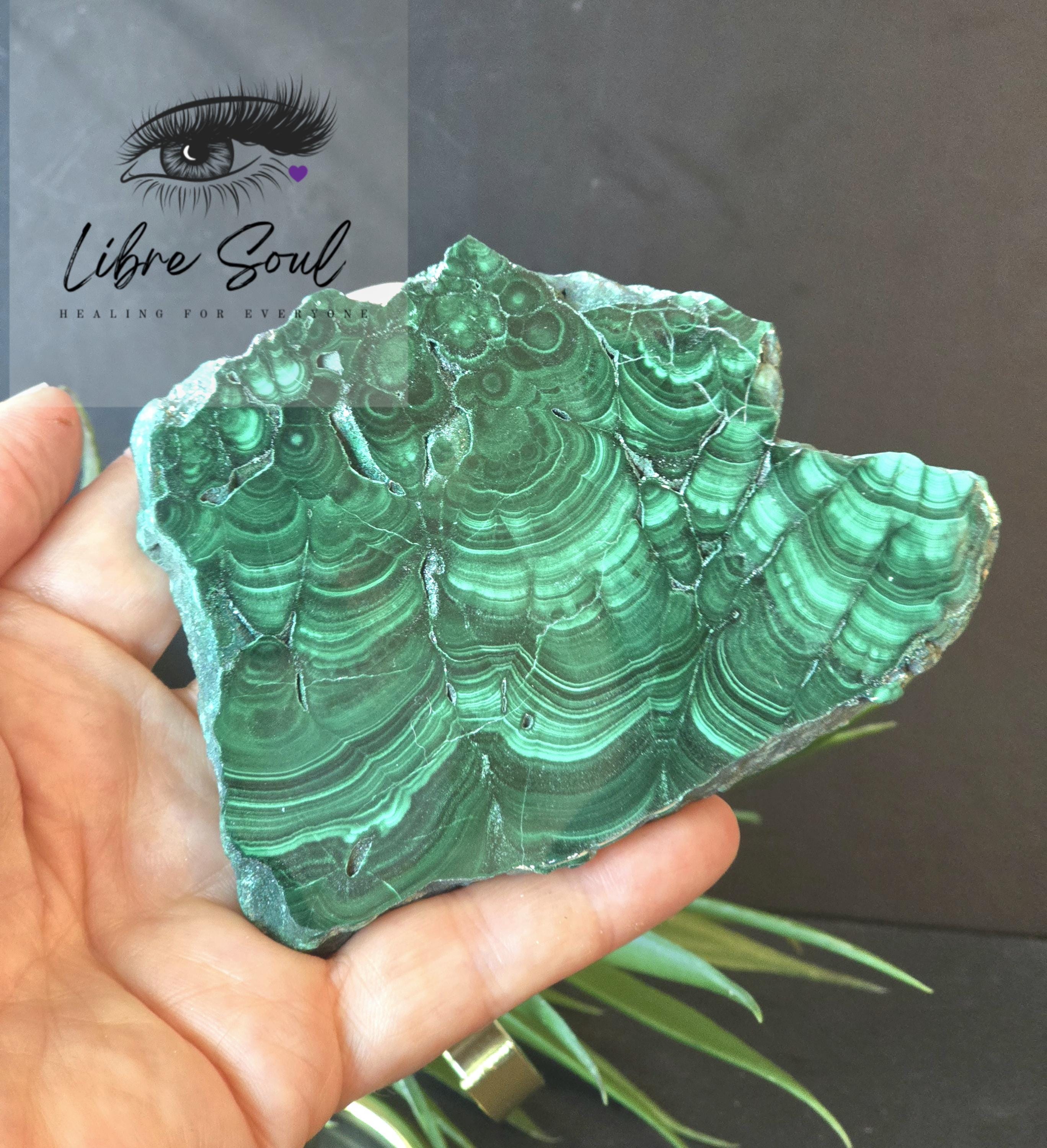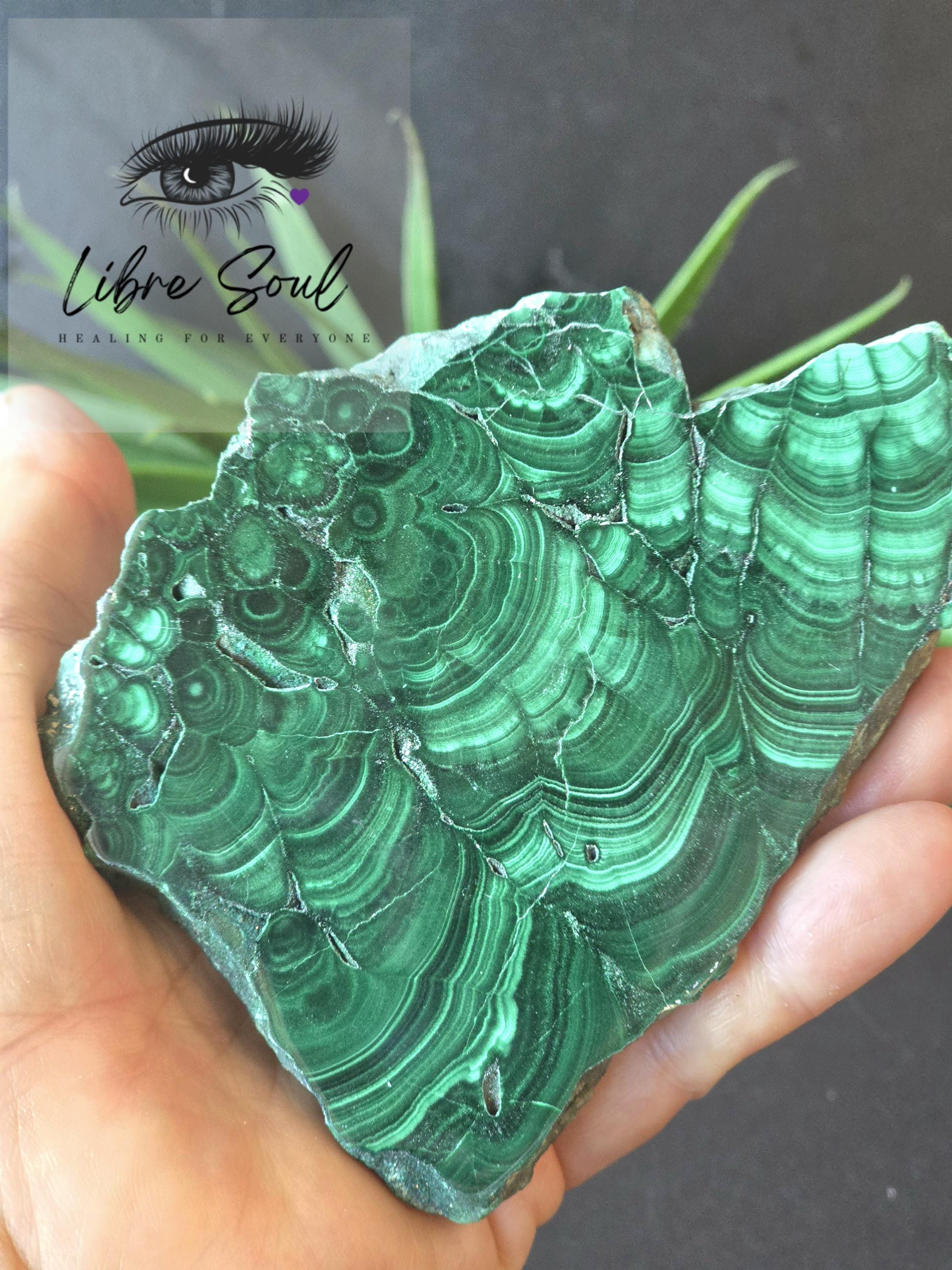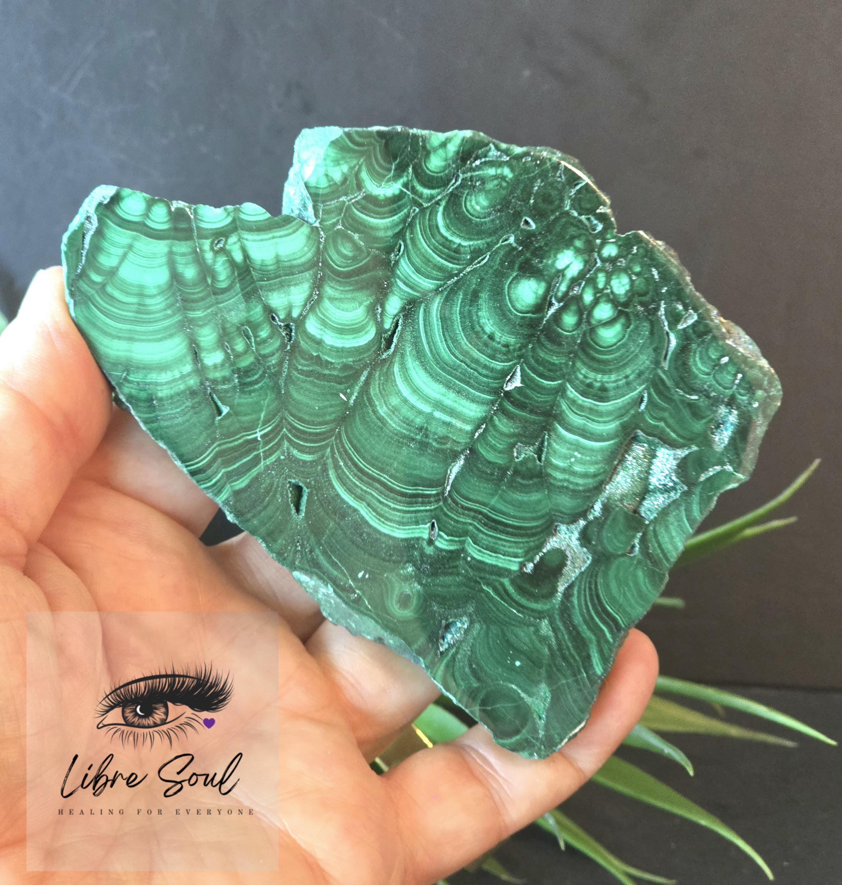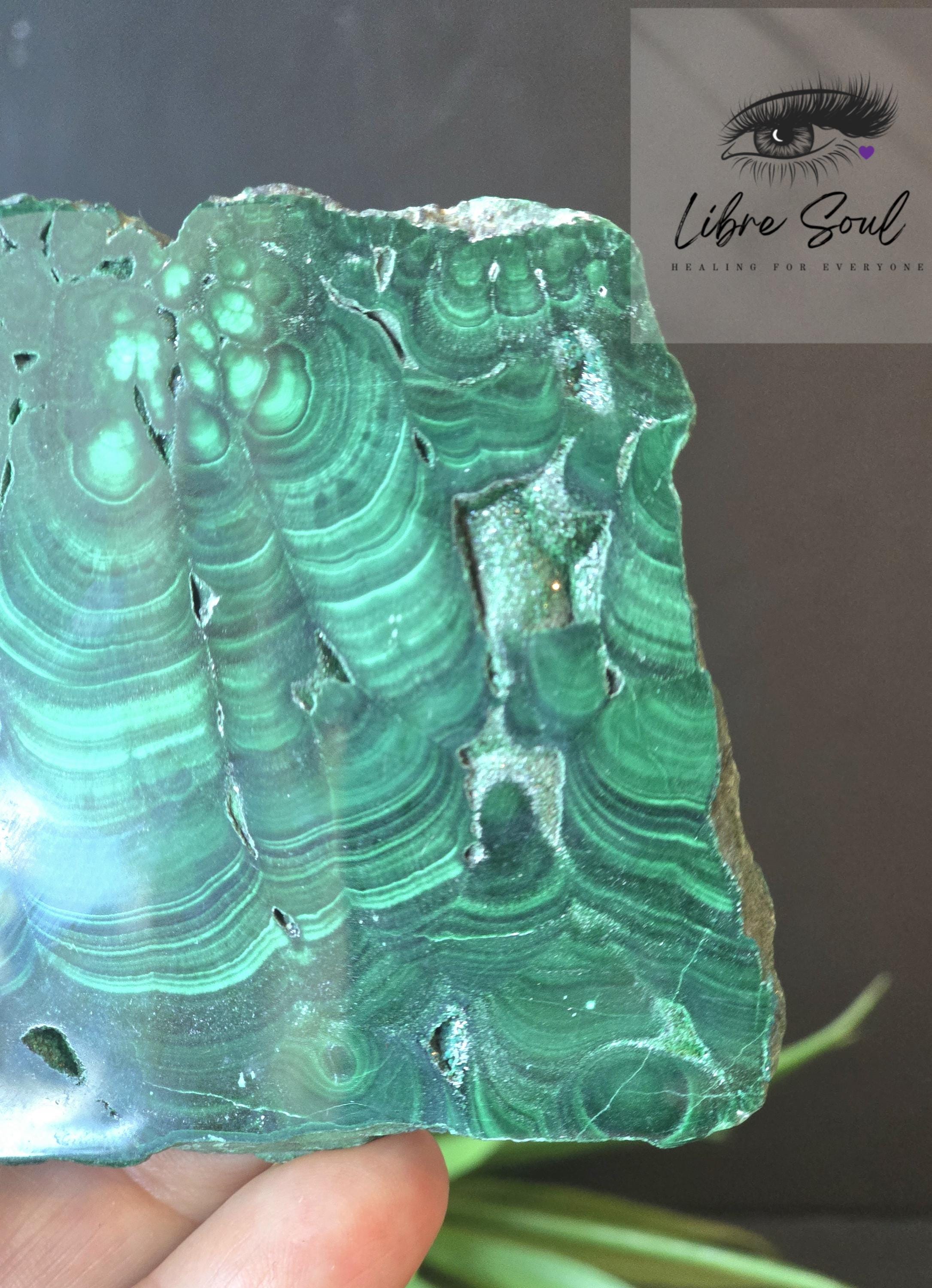 Malachite personifies the deep healing green of nature and represents the innate beauty of flowers, trees, roots, and plants. It manifests a deep Devic green which rules the material plane. It is a Stone of Transformation, assisting one in changing situations and providing for spiritual growth. It heals on physical and emotional levels, drawing out impurities and stimulating the Life Force throughout the aura and body.