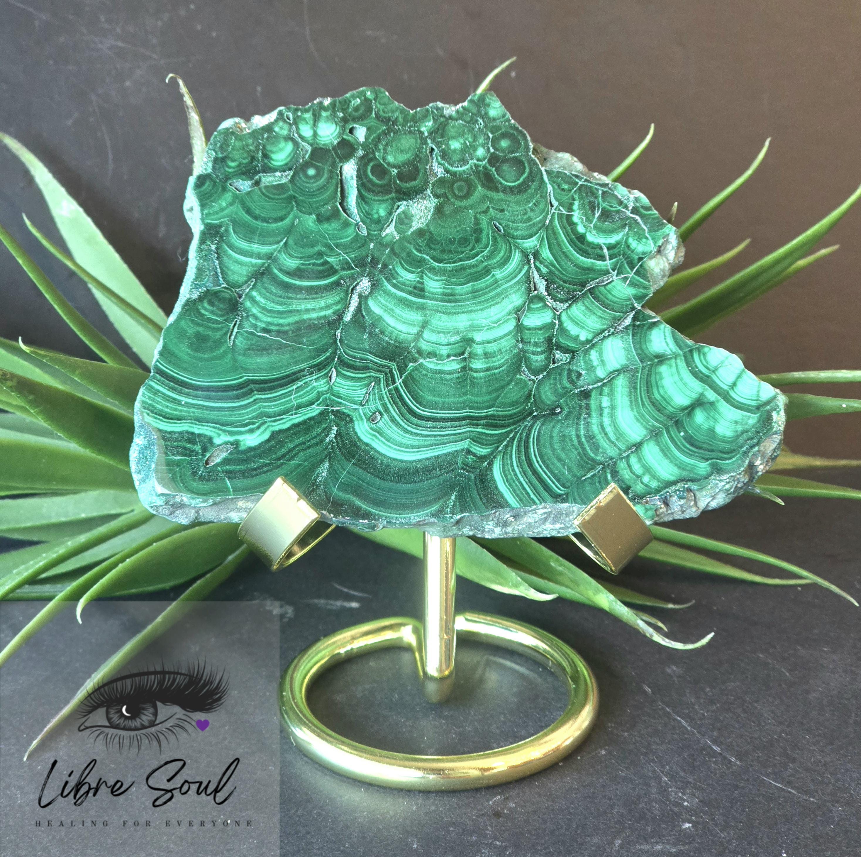 Natural Polished Malachite Slice/Slab Druzy Specimen with Stand~